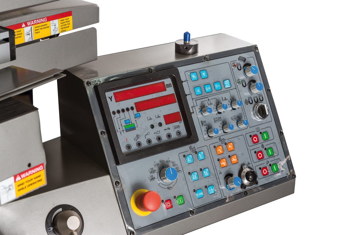 Частота вращения шпинделя у этой модели - 2850 об/мин, имеется механизм его быстрого подъема. Предусмотрена автоматическая система смазки основных узлов и агрегатов, включая направляющие, а также подвод СОЖ в зону шлифовки. Во время шлифовки дисплей блока управления индицирует положение по оси Y, показывающее действительное положение шпинделя, также выводятся параметры начала отсчета, величины чернового шлифования, начальной точки чистового шлифования, заданная координата, точка подъема, периодичность выхаживания и т.п.