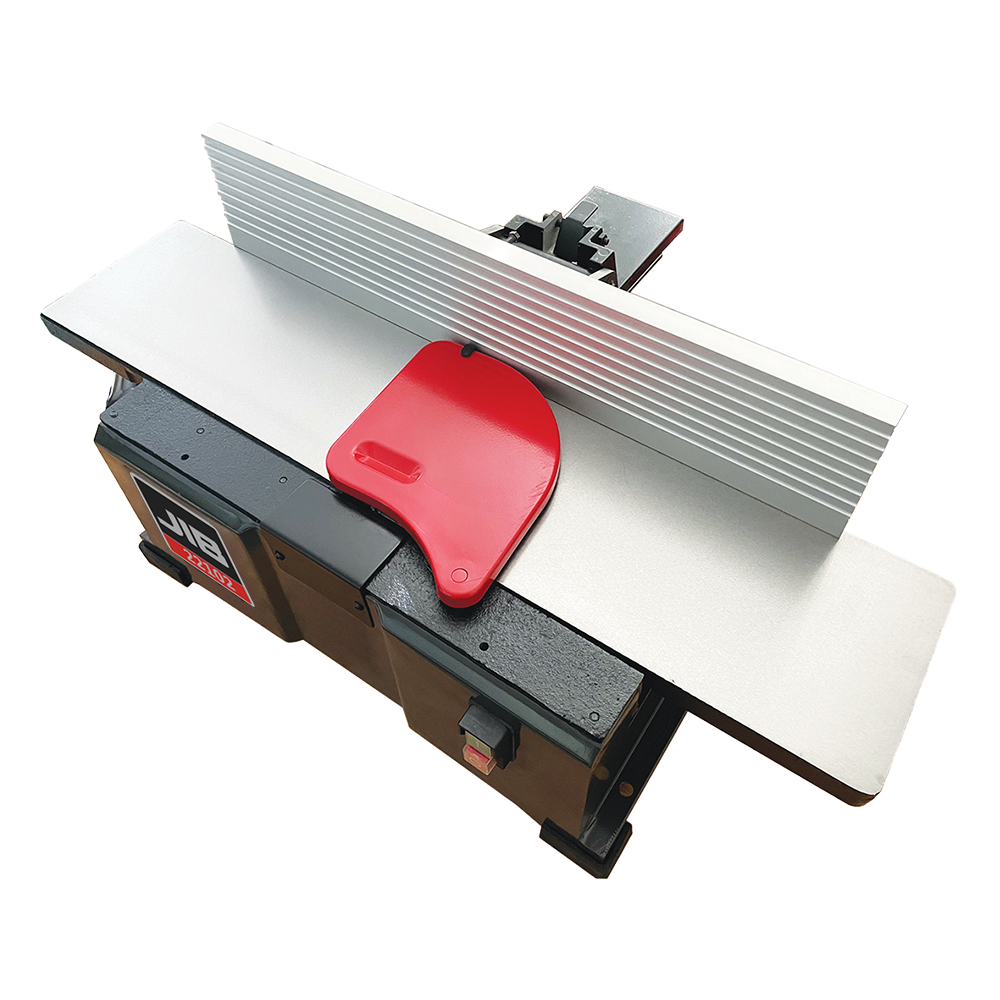 • Настольный фуговальный станок JIB 22102 HL оснащен чугунным столом и установленным по центру параллельным упором, который достаточно прочный для работы с крупногабаритными заготовками.