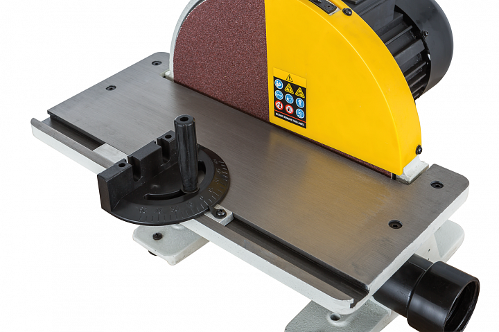 Заготовку размещают на регулируемом опорном столе. Он оборудован винтовым зажимом-фиксатором и рукояткой привода зубчато-секторного механизма, которым и производят наклон. Для контроля положения предусмотрена транспортирная шкала с четкой качественно выполненной разметкой через один градус и подпружиненные фиксаторы нескольких распространенных в обработке углов. В поверхности стола сделан Т-образный паз для скользящего углового упора или для фиксации вспомогательных приспособлений.
