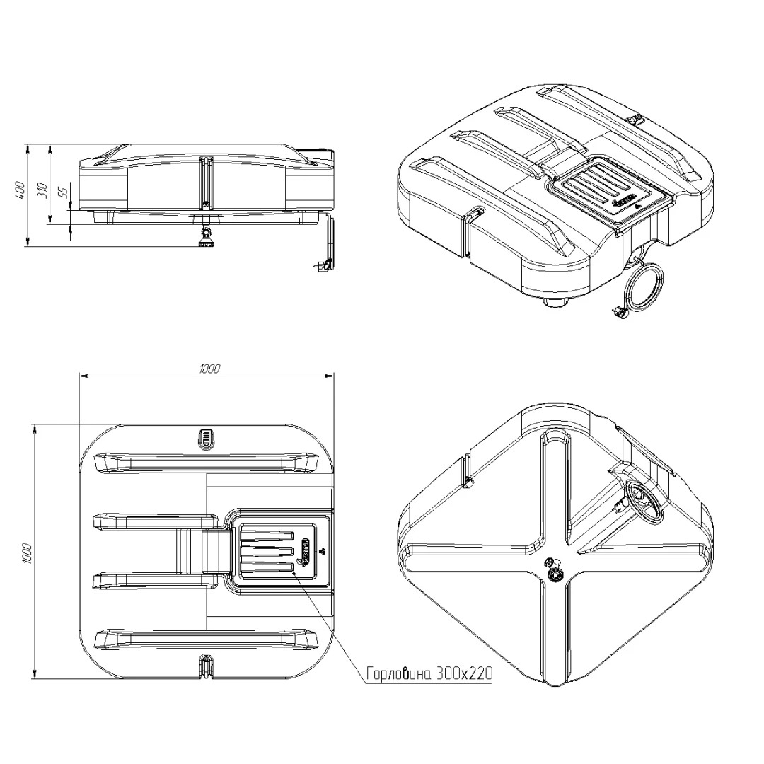 размер и габариты горловины позволит комфортно производить обслуживание баков внутри;