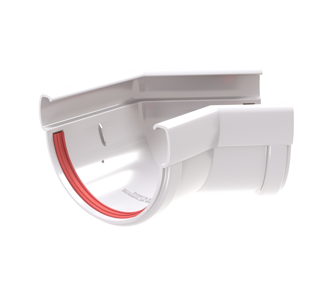 Угол желоба соединяет два желоба под углом 135° как на внешних, так и на внутренних углах фасада.