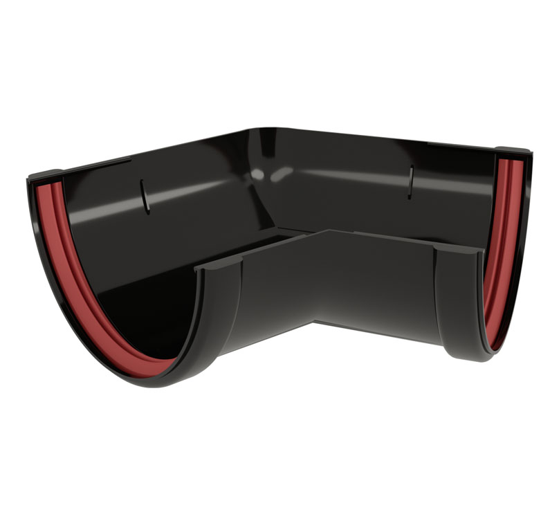Угол желоба соединяет два желоба под углом 135°, как на внешних, так и на внутренних углах фасада.