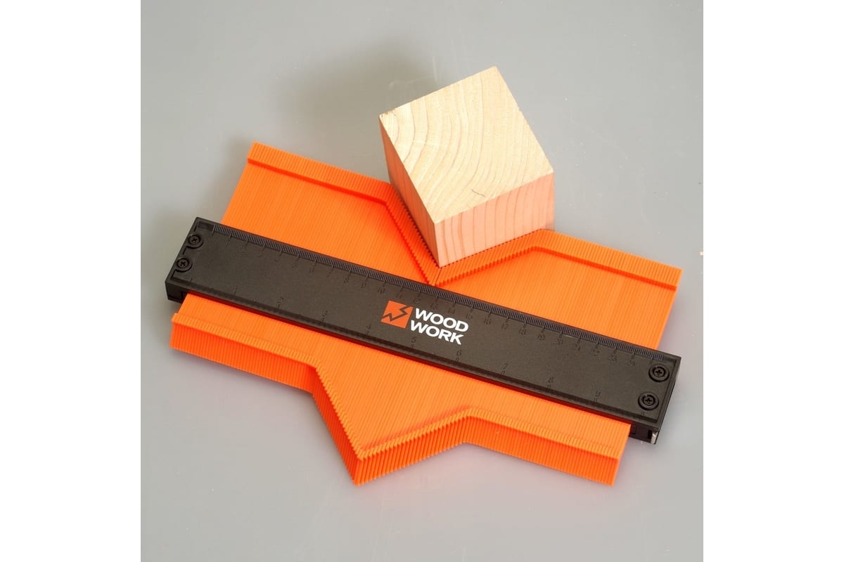 Шаблон для копирования контура 250х130 мм Woodwork GRT-250 с надежной фиксацией подвижных пластин предназначен для копирования и разметки различных фигур на заготовках, для укладки плитки, ламината, ковров, проверки размеров и формовки