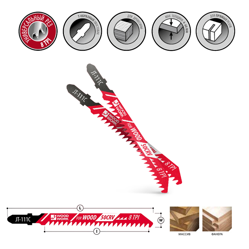 • пилки лобзиковые по древесине для электролобзиков разработаны для прямолинейного, продольного и поперечного реза мягких и твердых пород дерева, фанеры, а также прочих древесных материалов