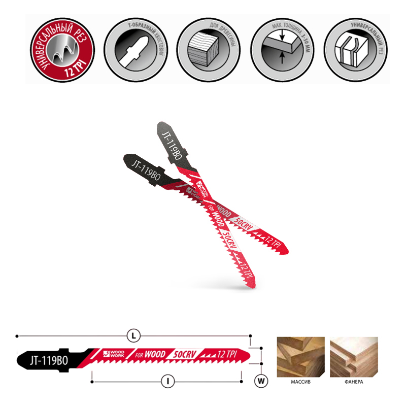 • пилки лобзиковые по древесине для электролобзиков разработаны для прямолинейного, продольного и поперечного реза мягких и твердых пород дерева, фанеры, а также прочих древесных материалов