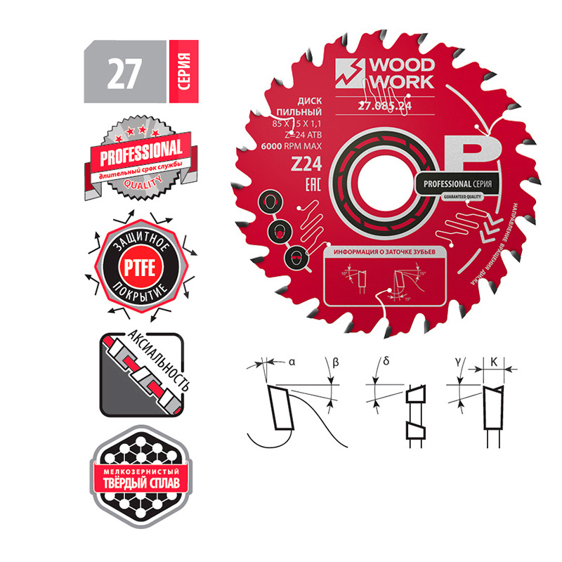 • Ультратонкие пильные диски серии 27 Woodwork для продольного и поперечного пиления древесины - качественный профессиональный инструмент, с оптимальным соотношением цена/качество предназначены для ручного электроинструмента