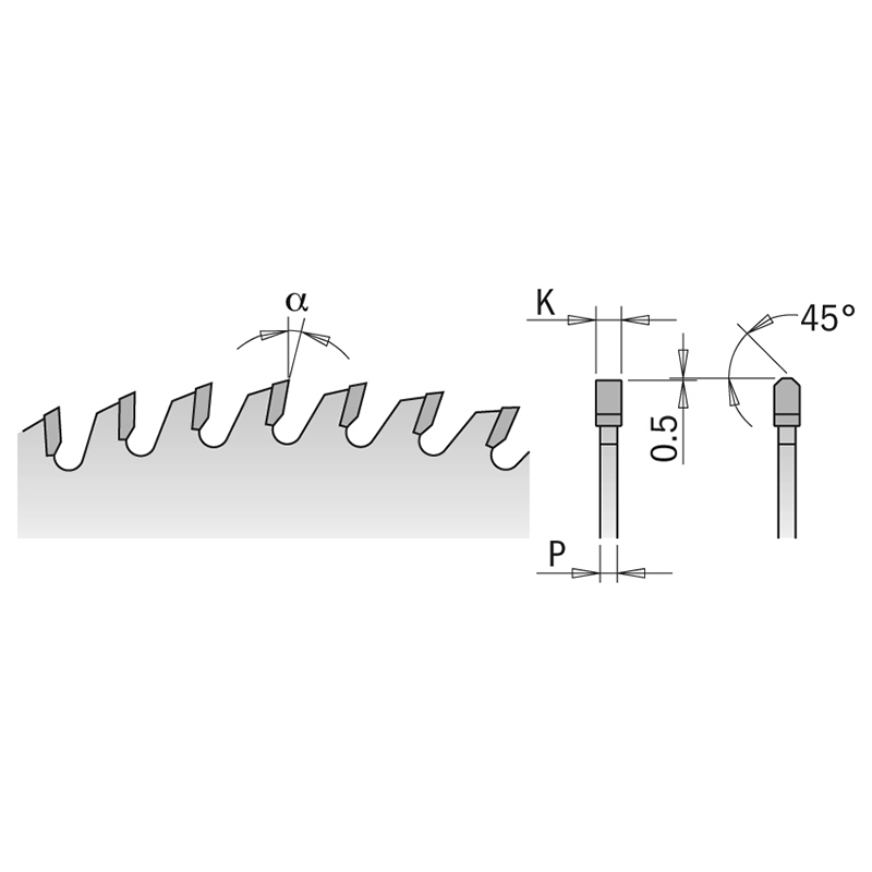 • Пильные диски с трапецеидальными зубьями и с различной высотой зуба для аккуратного поперечного реза всех типов древесины и фанеры