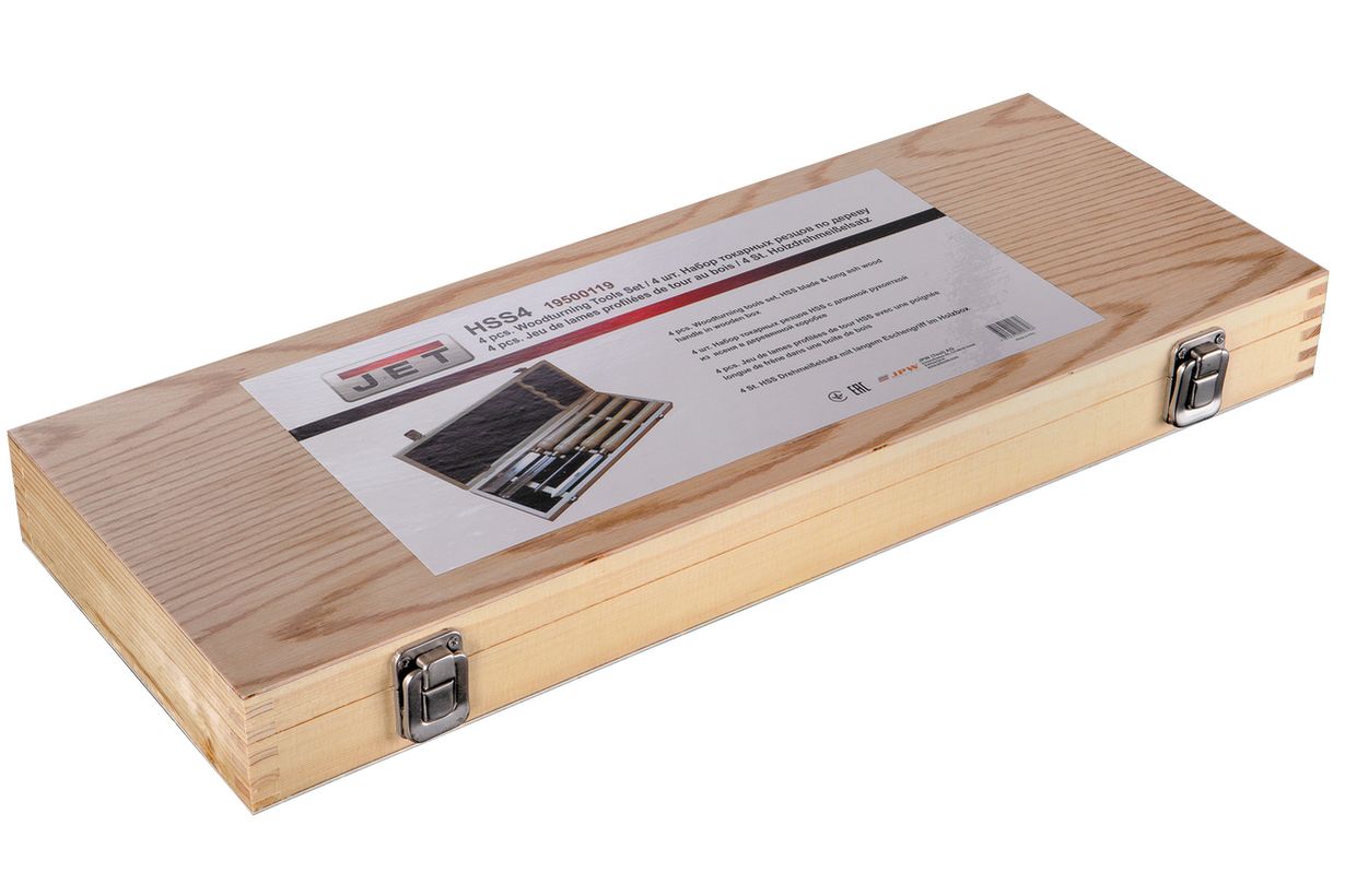 Набор токарных резцов HSS с длинной рукояткой из ясеня в деревянной коробке количество 4шт