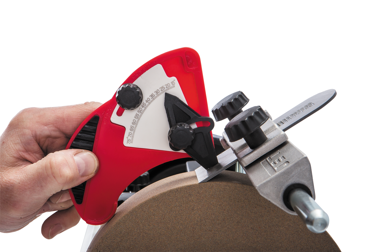 Предназначен для измерения угла заточки режущей кромке и его переноса для правильной заточки.
