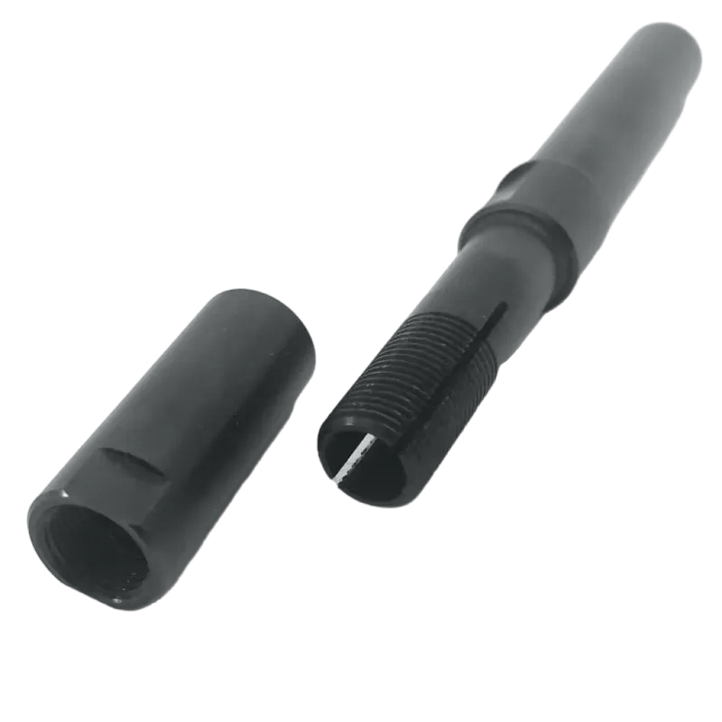 • Состоит из двух частей: корпус с хвостовиком диаметром 12 мм для установки в цангу фрезера и цанги 8 мм с резьбой для установки в корпус удлинителя