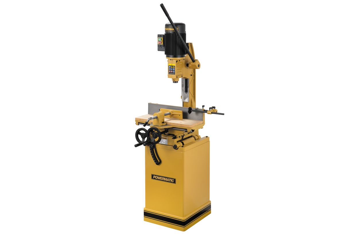Профессиональный долбёжно-пазовальный станок Powermatic 719T, оснащенный координатным столом и механизмом его наклона. Он нужен для стыковки деталей под углами, отличными от 90° (применяется при создании сложных конструкций, наподобие многогранных оконных рам). Регулировка наклона производится по транспортирной шкале с передней стороны станка, фиксация сквозным винтовым зажимом сразу с двух сторон основания.