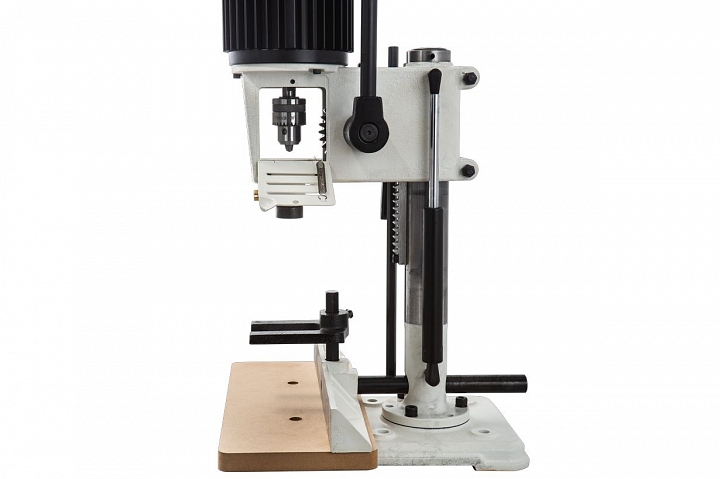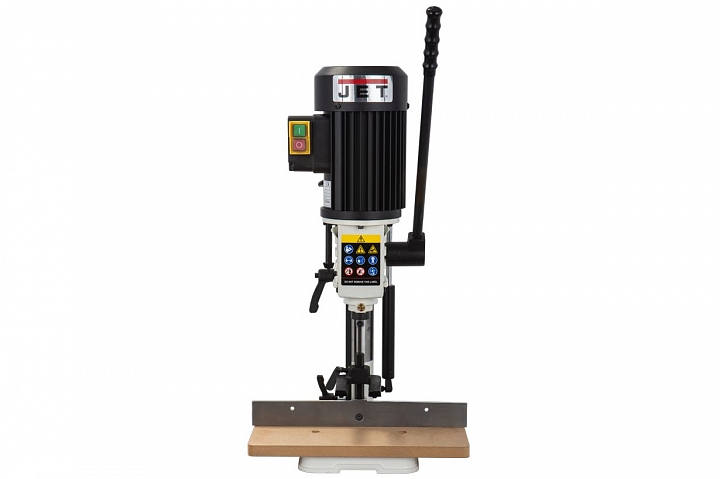 JBM-5 сочетает удобство, простоту применения и мобильность станка для любительской эксплуатации с надёжностью и точностью профессионального оборудования. Среди вспомогательных систем, облегчающих работу, — газовая стойка, компенсатор веса моторной части, механизм подачи реечного типа с длинным рычагом, вертикальный прижим для фиксации заготовки и продольный упор. В комплекте поставляется набор переходных втулок для быстрой и точной установки сверла-долота.