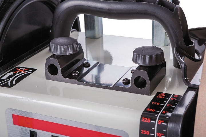 Станок имеет ручку для облегчения переноски и небольшой выдвижной отсек для хранения аксессуаров и принадлежностей.