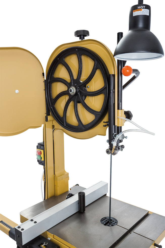 Как и другие станки марки Powermatic, этот адресован самым взыскательным пользователям, желающим иметь лучшее в своем классе оборудование, укомплектованное максимально полно. Так, помимо всех необходимых и обязательных систем PWBS-14CS имеет лампу (плафон на кронштейне) для освещения рабочей области и воздушный насос с гибким патрубком для сдува опилок с линии реза.