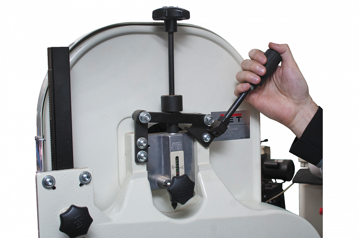 Наиважнейшее качество любого профессионального станка – простота и стабильность настроек – является сильной стороной JWBS-14DXPRO. Дело в том, что эта пила имеет необычную по европейским меркам раму, выполненную из цельной чугунной отливки, её жёсткость и обеспечивает нужные характеристики. Другая особенность, которую многие ставят во главу угла, – очень большая для 14-дюймового (по диаметру шкивов) класса высота пропила, она более соответствует моделям со шкивами на 18 или 20 дюймов, а это совсем другие внешние габариты и цена.