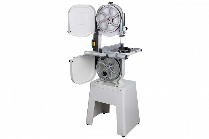 JET JWBS-14DS — ленточная пила с 14-дюймовыми шкивами, массивным чугунным столом, наклоняющимся в обе стороны, и жёсткой чугунной рамой-основанием. Модель представляет собой улучшенную модификацию хорошо известного ленточнопильного станка Jet JWBS-14OS-M и имеет ряд важных конструктивных особенностей. Станок штатно поставляется с трёхточечными роликовыми направляющими полотна, рычагом для быстрого натяжения и ослабления пильной ленты при хранении. Подставка для напольной установки получила более жёсткую и устойчивую конструкцию.