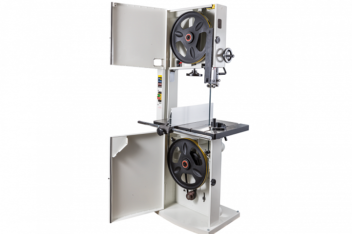 Jet JWBS-18 – новая ленточная пила для профессионального применения. Ее основное преимущество на фоне аналогов прошлых поколений – увеличенная высота распиловки. Этот параметр очень важен для тех, кому нужен универсальный станок, способный взять на себя функции делительного. К подобным работам приспособлен и параллельный упор: направляющий профиль можно установить вертикально на боковую грань так, чтобы надежно фиксировать плоские заготовки при их роспуске на тонкие пластины. В целом конструкция бокового упора очень хорошо проработана и соответствует самым строгим требованиям: профиль жесткий и прочный, закреплен на массивном чугунном кронштейне, который перемещается по цилиндрической направляющей. Предусмотрена грубая (вручную) и точная (микрометрическим винтом) установка.