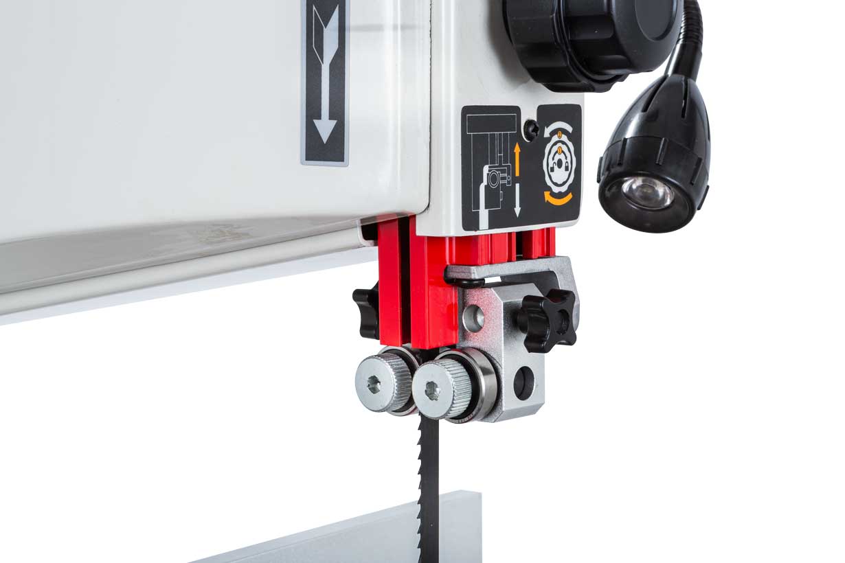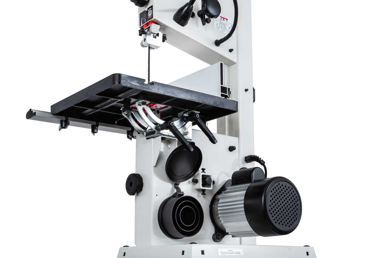 Базовая конструкция станка хорошо отработана, она используется давно при производстве многих схожих моделей и, в случае Jet JWBS-10SL, имеет ряд дополнительных эксклюзивных улучшений. Среди них рычаг для быстрого ослабления и натяжения полотна, позволяющий одним движением переводить станок из состояния хранения в рабочее. Хорошо продуманы и удобно реализованы некоторые «мелочи», вроде светодиодной подсветки или «ступенчатого» патрубка аспирации, позволяющего без всяких переделок подсоединить шланг любого из трех диаметров (50, 75 или 100 мм).