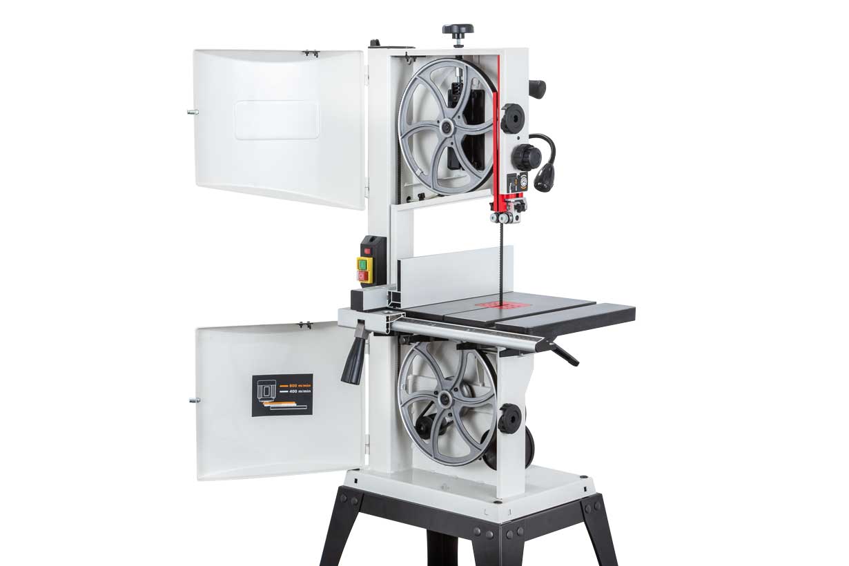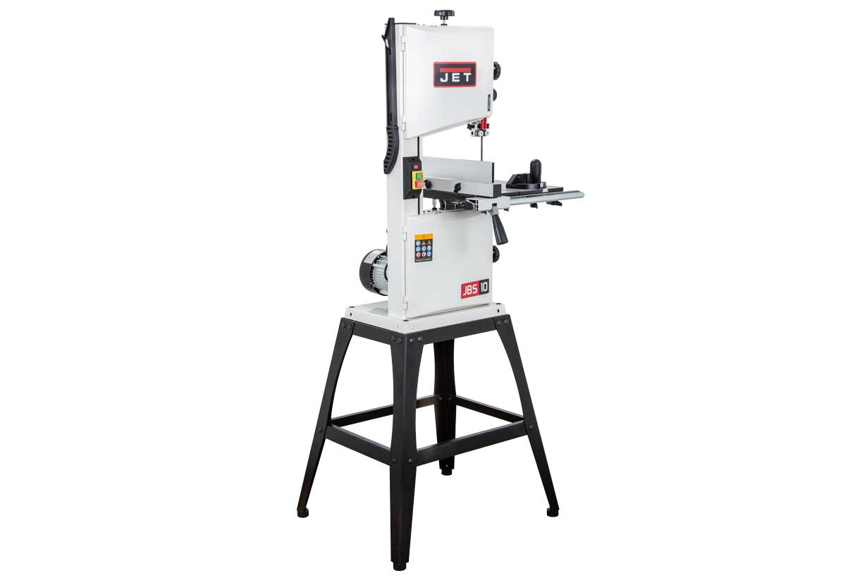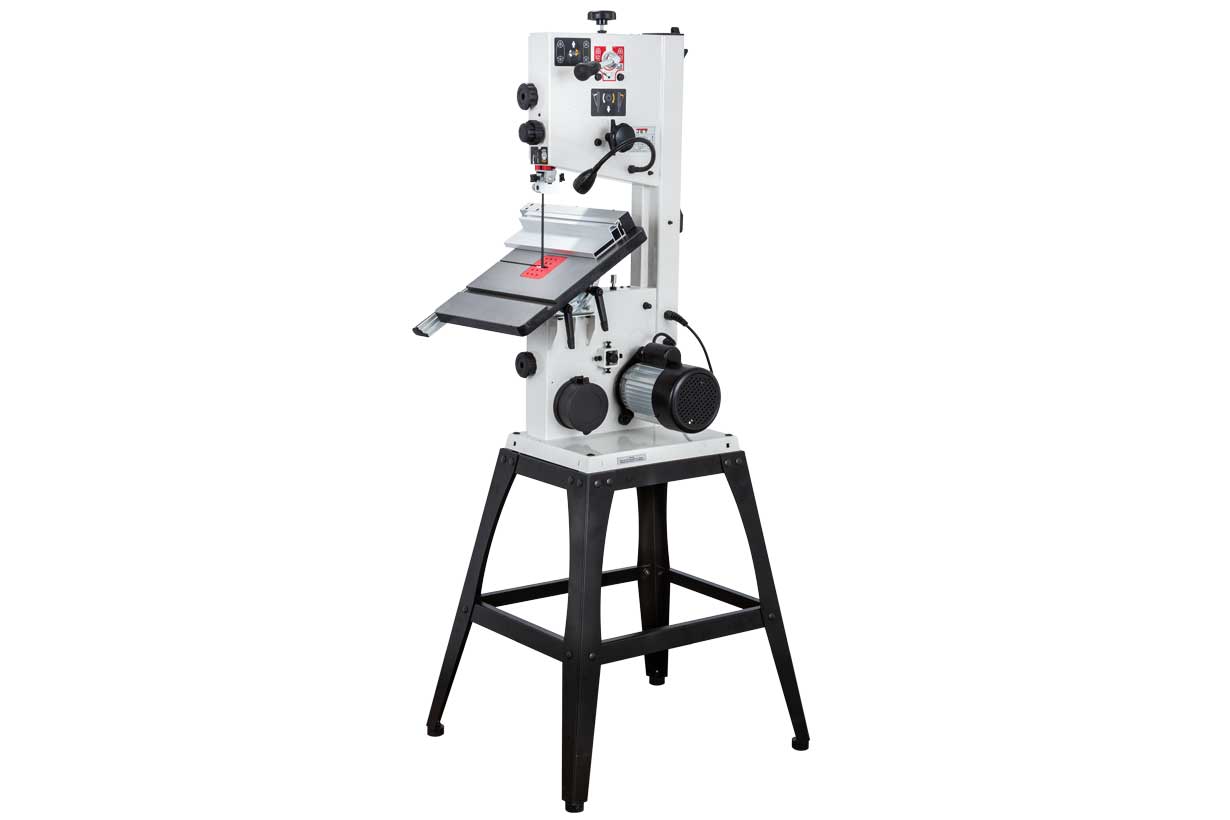 JWBS-10SL – напольная ленточная пила с трехопорными роликовыми направляющими, чугунным рабочим столом и двумя скоростями, предназначенная для любительской эксплуатации. Ее рабочие параметры позволяют «распускать» довольно крупные заготовки с высотой до 152 мм, предусмотрен наклон стола для выполнения скошенных резов.