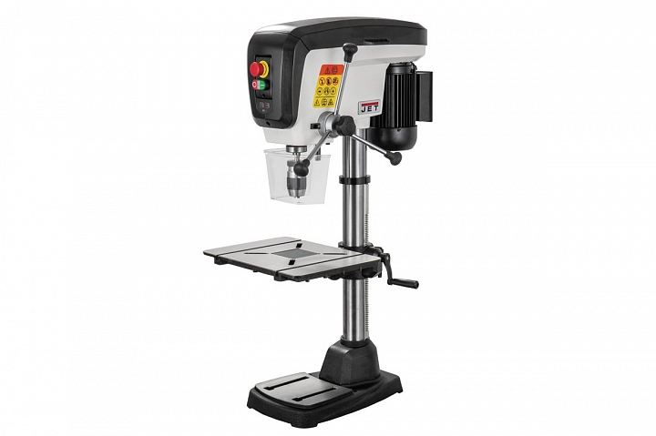 Jet JDP-15В - настольный вариант профессионального сверлильного станка для применения в столярной мастерской. Его рабочие параметры оптимизированы для решения задач, возникающих при деревообработке: увеличен ход пиноли шпинделя, повышена максимальная скорость вращения, рабочий стол увеличенной площади имеет прорези для крепления заготовки с помощью струбцин и большое отверстие в центре для сменной («жертвенной») вставки. Важная особенность – наличие четырех регулировочных винтов под основанием, что позволяет использовать вставки, сделанные из материала разной толщины. В остальном конструкция аналогична традиционным моделям, ориентированным на сверление металла, и не уступит им с точки зрения жесткости, массивности и запаса прочности.