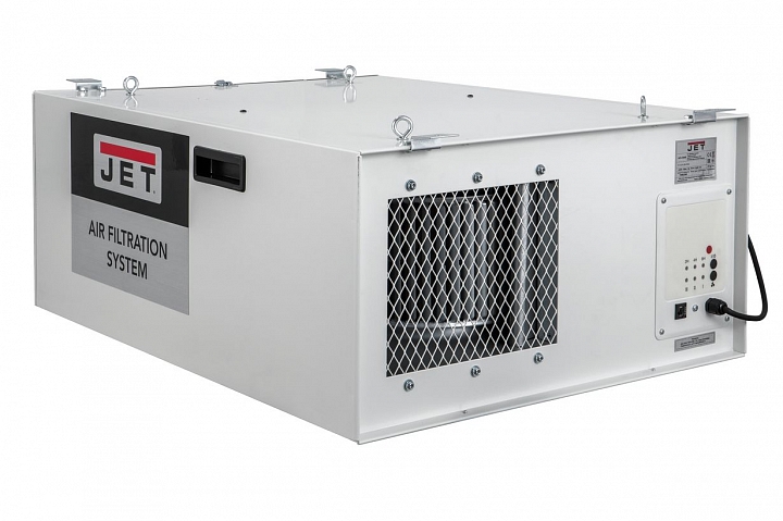 Система фильтрации Jet AFS-1000 B предназначена для очистки воздуха во всех производственных помещениях, где происходит загрязнение пылью или частицами лакокрасочных материалов, образующих взвесь. Предусмотрено два основных режима работы устройства: непрерывный и программируемый. Последний используют для очистки помещения в нерабочее время: при помощи ДУ-пульта устанавливают таймер на 2, 4 или 8 часов и мощность (производительность работы) – отработав программу, AFS-1000 B B отключится. Система фильтрации – двухступенчатая. В штатный комплект поставки входит наружный электростатический фильтр. Он очень эффективен и задерживает большую часть загрязнений, оставляя на долю основного встроенного фильтра лишь самую тонкую фракцию взвеси (в основном частицы менее 5 мкм). Внешний электростатический фильтр можно заменить на опционный угольный: он удаляет не только механические, но и некоторые химические загрязнители, очищая воздух от запахов. Монтаж системы производят на высоте не менее двух метров от пола на опору, выдерживающую не менее 40 кг статической нагрузки; также предусмотрены петли для подвеса к потолку. Производительность устройства соответствует помещению объемом до 300 кубических метров.