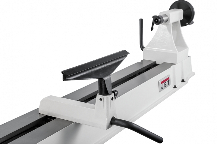 Размеры между центрами и над станиной достаточно велики, чтобы обрабатывать крупные заготовки. Таким задачам соответствует мощный асинхронный 750-ваттный двигатель, имеющий рёбра охлаждения и рассчитанный на продолжительную работу. Для передачи вращения использован клиноременный вариатор, имеющий 10 фиксированных скоростей для удобства переключения. Меняют их, не выключая мотор.
