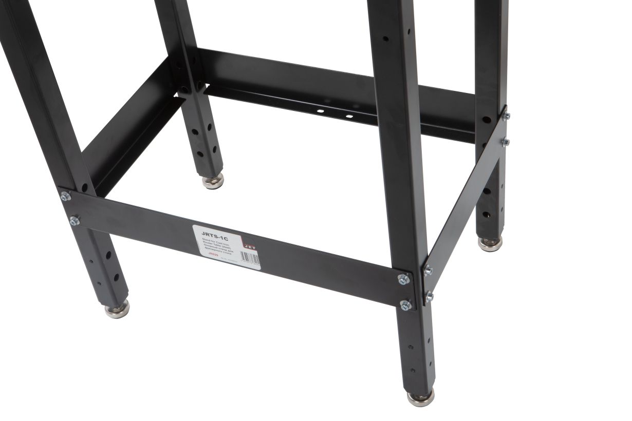 Поверх такой подставки устанавливается стол JRT-1C. Дальше, при полной сборке фрезерного комплекта JET, используется как деревообрабатывающий фрезерный станок. А именно – фрезерование массивной древесины любых пород.