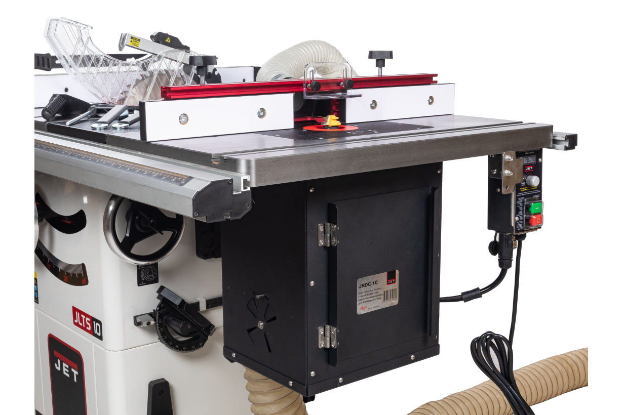 Один из вариантов использования JRM-2 – установка в чугунный фрезерный стол (JRT-1C арт.028 ) при помощи лифтового модуля JRMLS-1( арт. 10000079 - опция). Сам стол может быть простым с вырезом под площадку или специальным с фрезерным упором, Т-образными пазами, собственным выключателем и иными специальными доработками, как JET JRT-1C (арт.JR028) .
