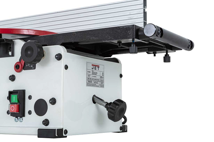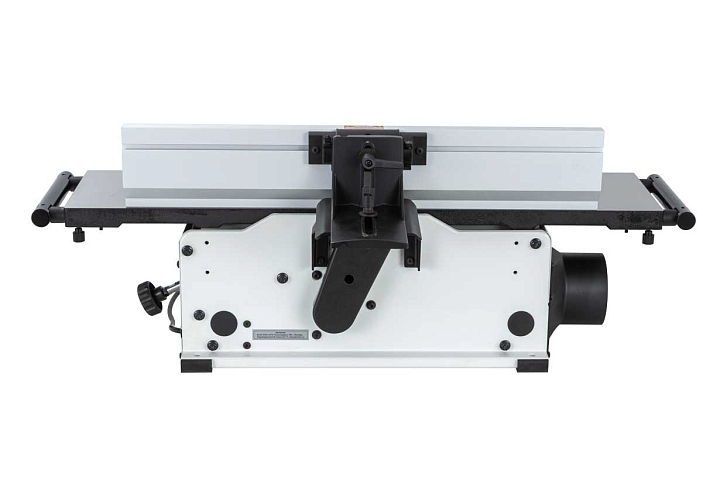 Как и у старших моделей, появилась возможность регулировки подающего и принимающего столов. И не только по высоте, но и по плоскости. А параллельный упор, изготовленный из экструдированного алюминия, имеет небольшой вылет и дополнительно может быть зафиксирован опционально поставляемыми кронштейнами для усиления жёсткости при фуговании тяжёлых длинных заготовок.
