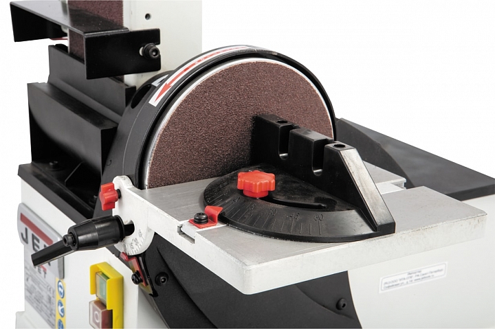 Jet JSG-64 тарельчато-ленточный шлифовальный станок для использования в столярной мастерской при любительской работе с деревом. Спектр решаемых задач очень широк: шлифовка торцов, кромок и плоских деревянных поверхностей, скругление граней, удаление старых покрытий, возможна и заточка инструмента.