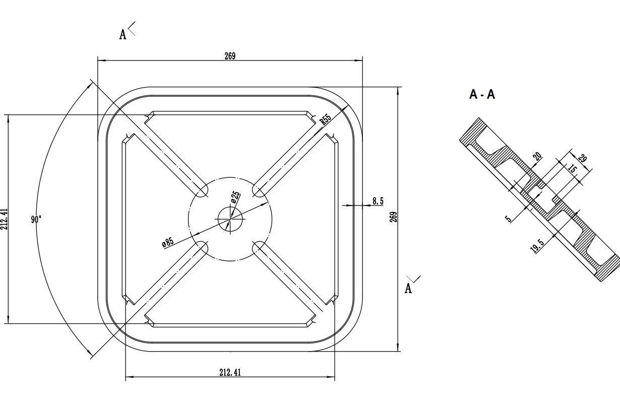 Размер Т-образного паза основания, мм 18