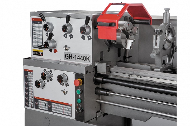 Расстояние между центрами - 1000 мм. JET GH-1440К устанавливается на массивную станину из чугуна, ее направляющие закалены токами высокой частоты и отшлифованы. JET GH-1440K имеет 40 типов продольных и поперечных подач в автоматическом режиме, а также позволяет нарезать метрические и дюймовые резьбы. Обороты шпинделя можно выбирать из 12 предустановленных режимов в диапазоне то 40 до 1800 об/мин.