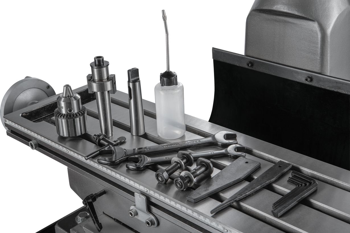 Станок имеет мощный крестовый стол с Т-образными пазами. Рабочий стол оснащен прецизионным механизмом перемещения. Количество пазов – 3 при ширине 14 мм. Вес станка 285 кг.