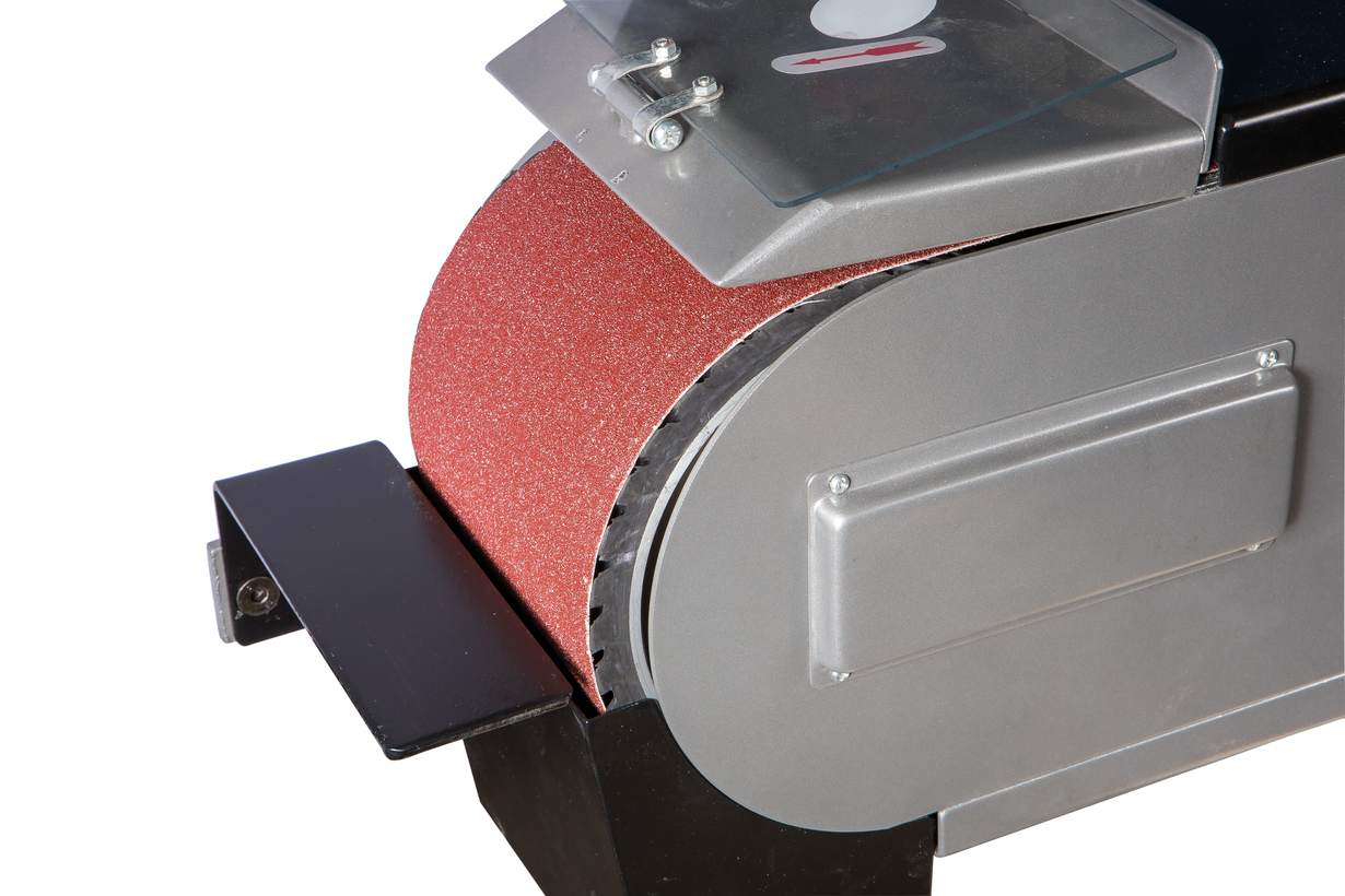 Станок установлен на жесткую станину с широким основанием и крепится к полу с помощью болтов. Такой подход обеспечивает устойчивость и сводит к минимуму возможность появления вибраций в зоне шлифовки. JBSM-150 сразу же готов к работе после установки. Производитель комплектует его всем необходимым, в том числе и шлифовальной лентой с наиболее востребованным классом зернистости - 60. Для увеличения срока службы абразивной ленты рекомендуется приобрести карандаш для ее чистки. Также дополнительно можно приобрести гибкие рукава для подключения внешнего стружкоотсоса.