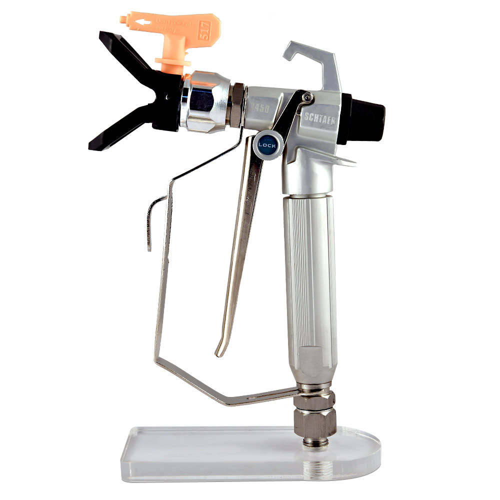 Краскопульт безвоздушного распыления SCHTAER X-450 отличается высоким качеством исполнения, легким весом и мягким ходом спускового крючка; предназначен для распыления как водных, так и масляных ЛКМ и совместим со всеми окрасочными аппаратами SCHTAER и других популярных брендов.. Входной разъем: 1/4"NPSM, 1/4"PT или M16*1.5. Выходной разъем: 11/16", 7/8″