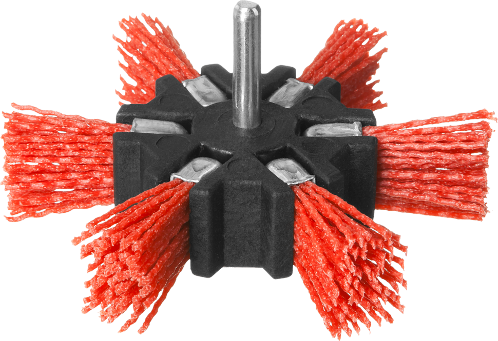 Щетка дисковая звезда ЗУБР 35163-100_z02 применяется с дрелью для удаления заусенцев, въевшейся грязи и шлифовки поверхностей изделий из пластика, древесины, стали и цветных металлов. Рабочая часть щётки изготовлена из нейлоновой проволоки и покрыта абразивом. Подходит для бережного матирования и текстурирования дерева.