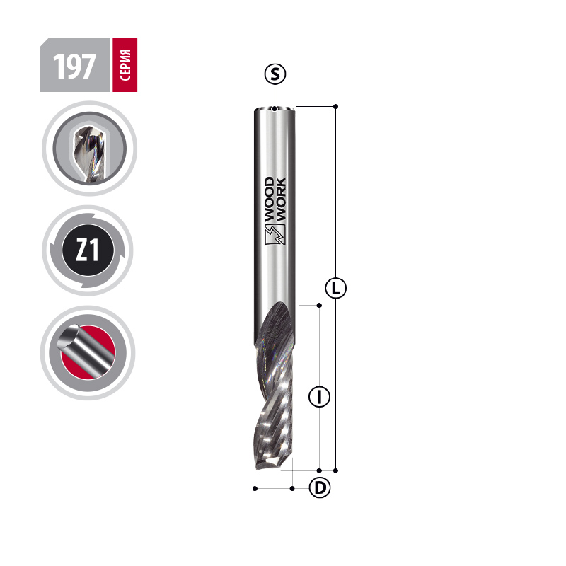 • Фрезы монолитные спиральные UpCut Серия 197 Woodwork подходят для ручных фрезеров и станков ЧПУ