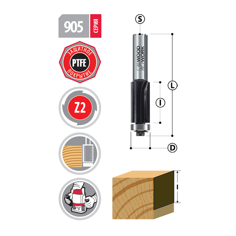 • Фрезы обгонные с подшипником Серии 905 Woodwork используются для решения различных задач, например: фрезерование пазов, выборка четверти, соединение шип-паз, соединение на шпонку