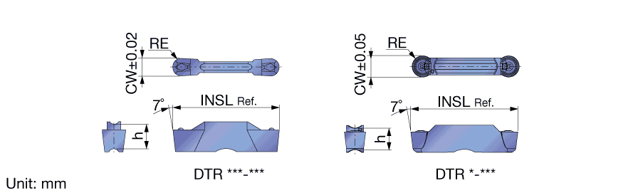 Двусторонние пластины с полным радиусом для профилирования и подрезки, допуск ширины пластины +-0,02 мм (только DTR3-,4-,5-,6- и 8-*** +-0,05 мм)