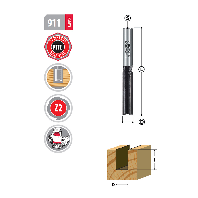 • Фрезы пазовые серии 911 WOODWORK рекомендуются при работе с ручными фрезерами