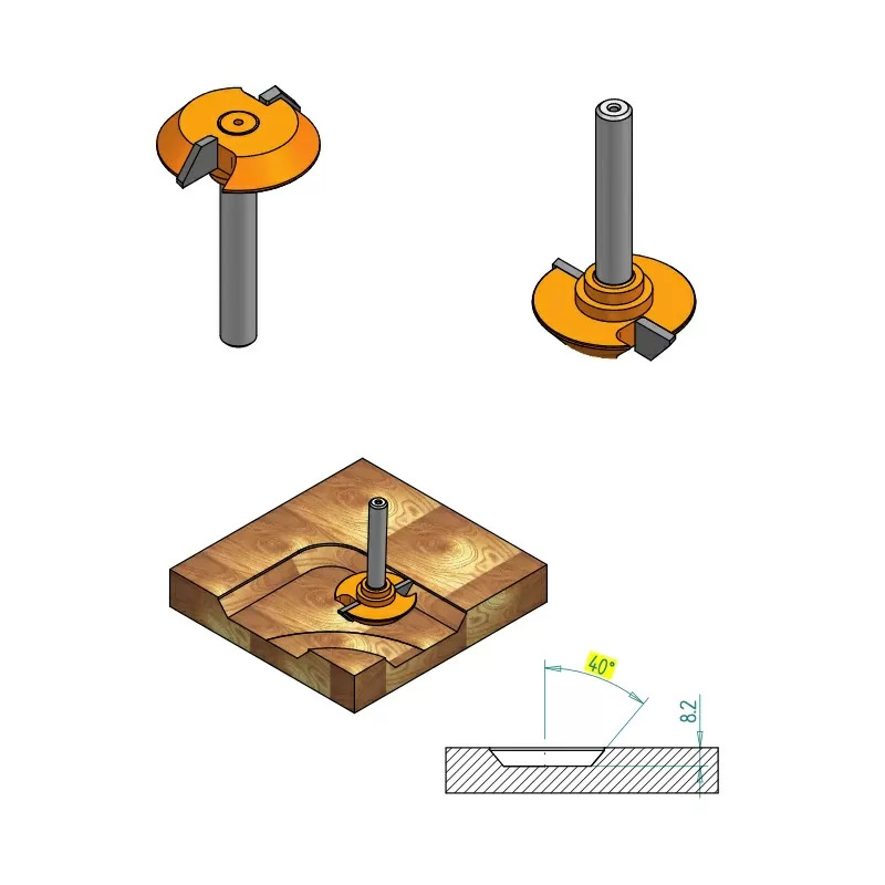 • Благодаря наклонной боковой режущей кромке 40°, фрезерует чисто без задиров даже торцевые спилы проблемной древесины