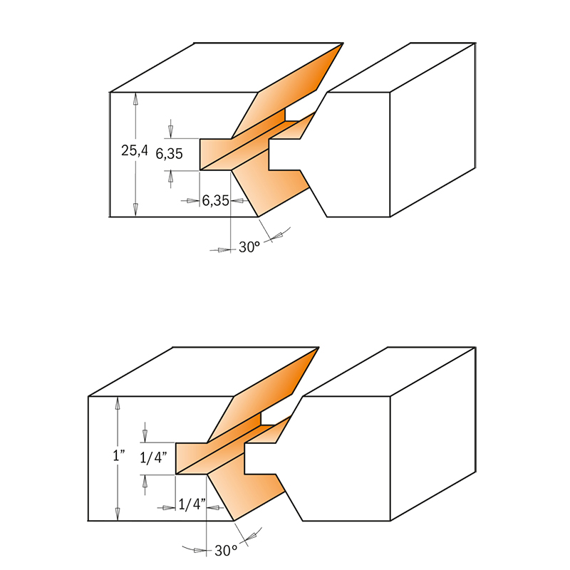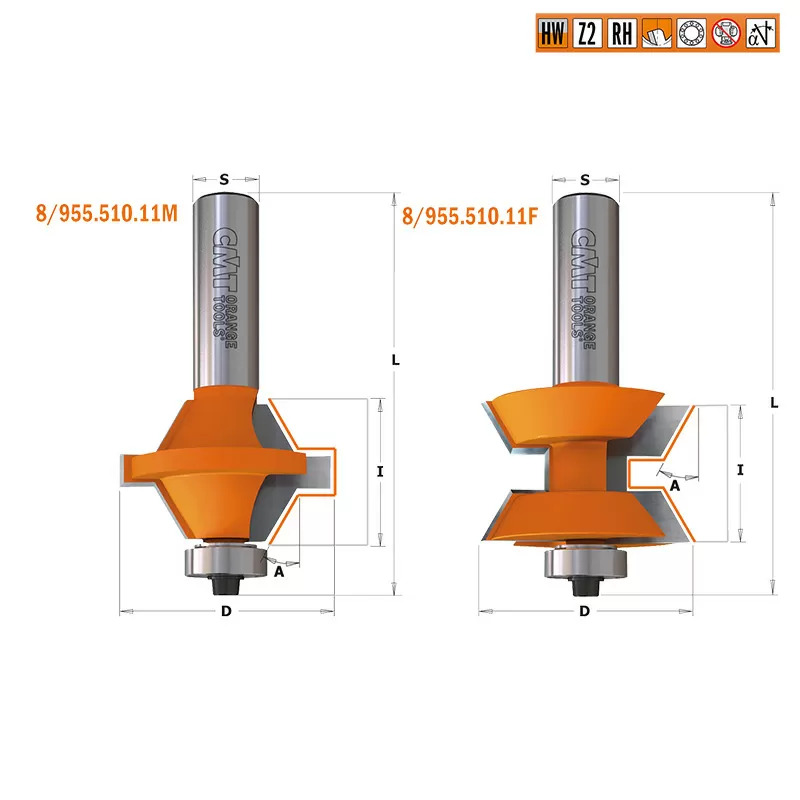 • Отличный комплект из двух фрез для создания простых, красивых и прочных соединений при изготовлении мебельных дверок или столешниц