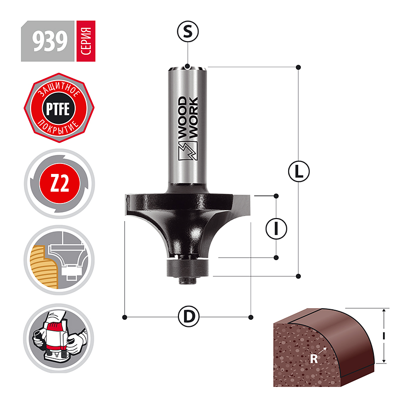 • Фрезы радиусные для искусственного камня Серия 939 предназначены для использования в ручных фрезерах