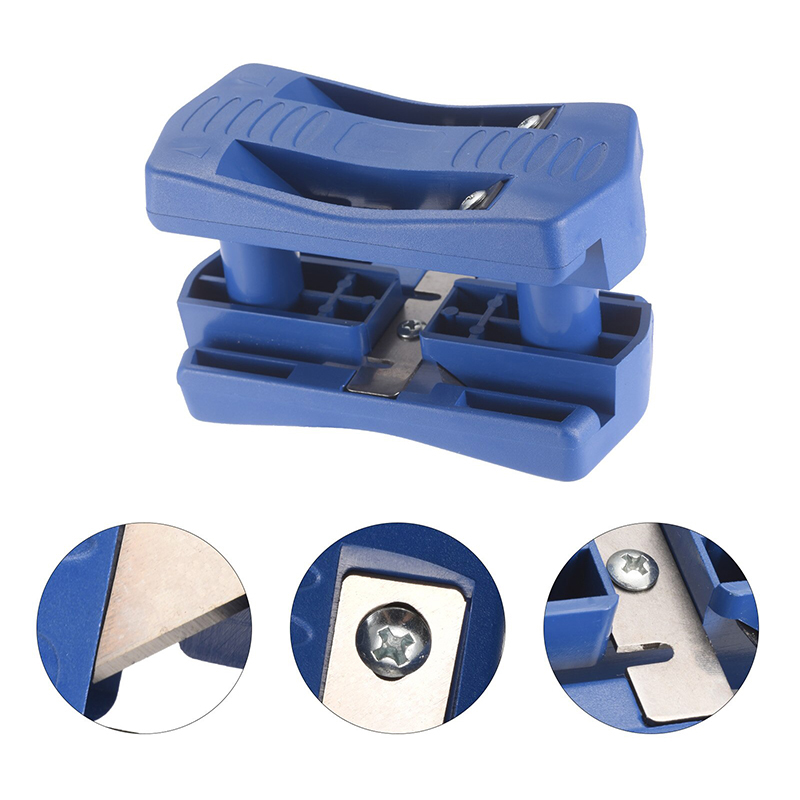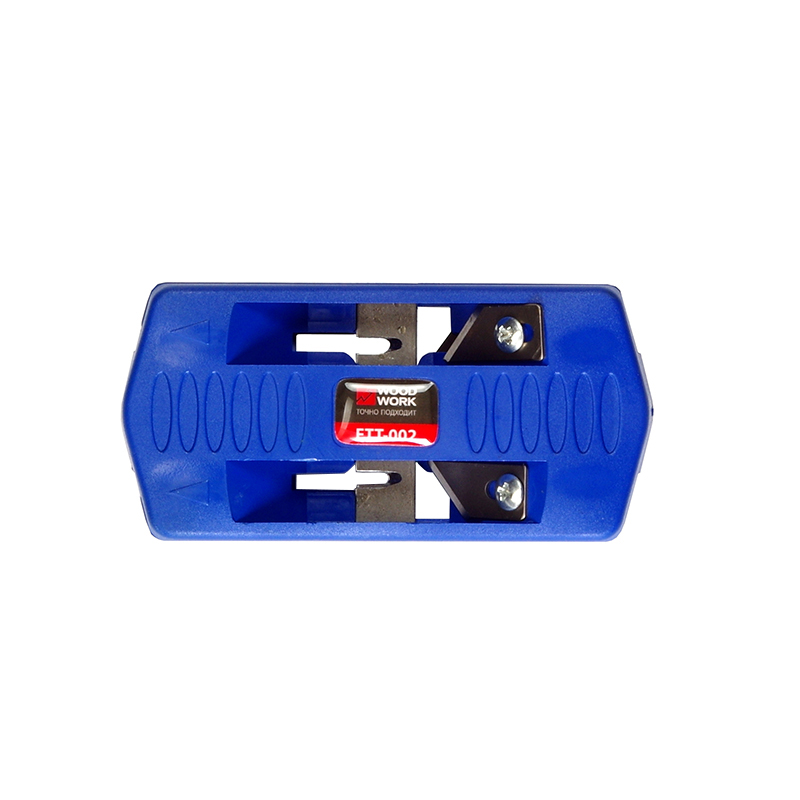 • Два резака из инструментальной стали, один из которых режет по прямой, а другой под углом, аккуратно снимают свесы кромки с двух сторон